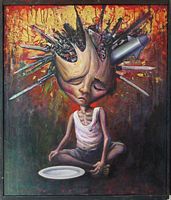 Recognizing that ART is the most powerful vehicle for expression and that DEMOCRACY deals with the Rights of Society as a whole, we call on all artists, using any media, to submit works which express and represent the human struggle for Freedom, Justice and Human Rights for all members of Society.